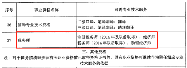 稅務師(2014年以后取得):助理經濟師,即初級職稱。